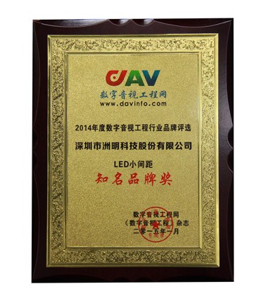 近日,洲明科技榮獲數字音視工程網“2014年度LED小間距知名品牌獎”、投影時代網“2014年度優秀品牌獎”、中國投影網“2014年度小間距LED拼接顯示屏品牌大獎”等眾多獎項,這是對公司強大品牌實力,以及在小間距領域具備獨特領先優勢的充分肯定和有力見證,也為2014年劃上了一個圓滿的句號。