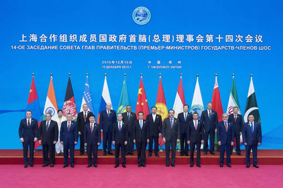 2015年12月14日至15日,上海合作組織(以下稱“上合組織”)成員國首腦(總理)理事會第十四次會議在河南省鄭州市舉行。上合組織成員國哈薩克斯坦總理馬西莫夫、中華人民共和國國務(wù)院總理李克強、吉爾吉斯斯坦總理薩里耶夫、俄羅斯聯(lián)邦政府總理梅德韋杰夫、塔吉克斯坦總理拉蘇爾佐達、烏茲別克斯坦第一副總理阿齊莫夫,觀察員國阿富汗、白俄羅斯、印度、伊朗、蒙古、巴基斯坦政府首腦,以及聯(lián)合國亞太經(jīng)社會、東盟、亞信等有關(guān)國際組織和機制負責人出席了本次會議,會議由中國國務(wù)院總理李克強主持。會后,中國國家主席習近平集體會見了成員國政府領(lǐng)導人。