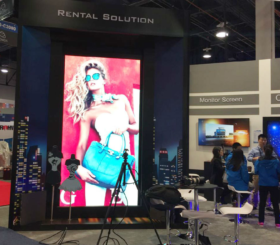 相比而言,UpadⅢ適應范圍更廣,全系列的點間距可實現戶外、戶外不同場合的展示,目前戶內可做到2.6mm,戶外可做到4.8mm,使得租賃產品在清晰度上進一步延伸。本次展會針對零售解決方案的UpadⅢ位于展廳左邊,模擬高端櫥窗展示效果,商品的視覺形象變得更具沖擊力,豐富細膩的色彩展示和動態形象演繹,賦予櫥窗展示商品強大的生命力,有夠有效刺激人們的購買欲望。