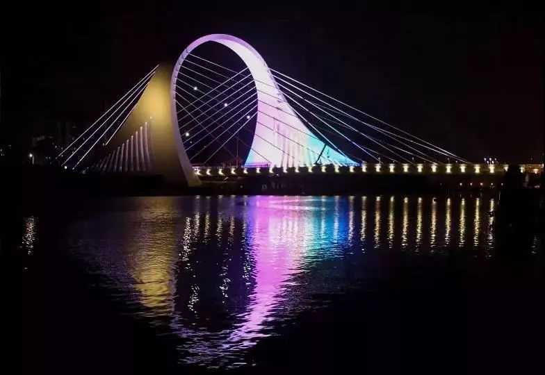 淮安運(yùn)河大橋的建造運(yùn)用了多類新工藝和新技術(shù),獨(dú)特的全三維造型設(shè)計(jì)更是賦予了這座橋靈動的生命。每當(dāng)夜幕降臨,霓虹般的淮安運(yùn)河大橋,在夜色中熠熠發(fā)光,成為淮安人心中的新地標(biāo)!
