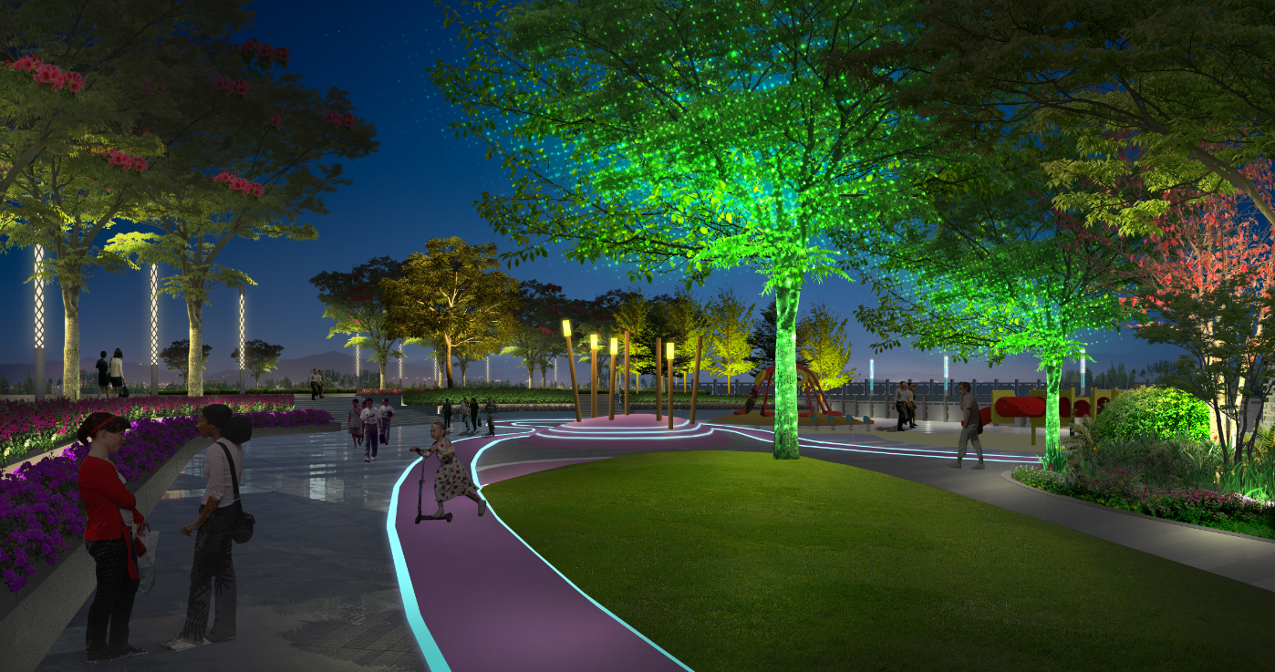 作為石馬河第二階段的主要景觀節(jié)點,洲明希望通過柔和的燈光、創(chuàng)意的設(shè)計,將沿河公園打造成市民休憩、游人觀賞的絕佳場所,為鳳崗的夜景再添濃墨重彩的一筆。