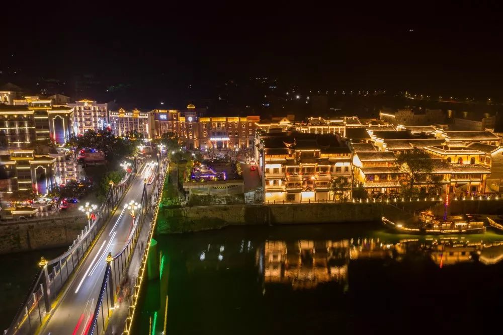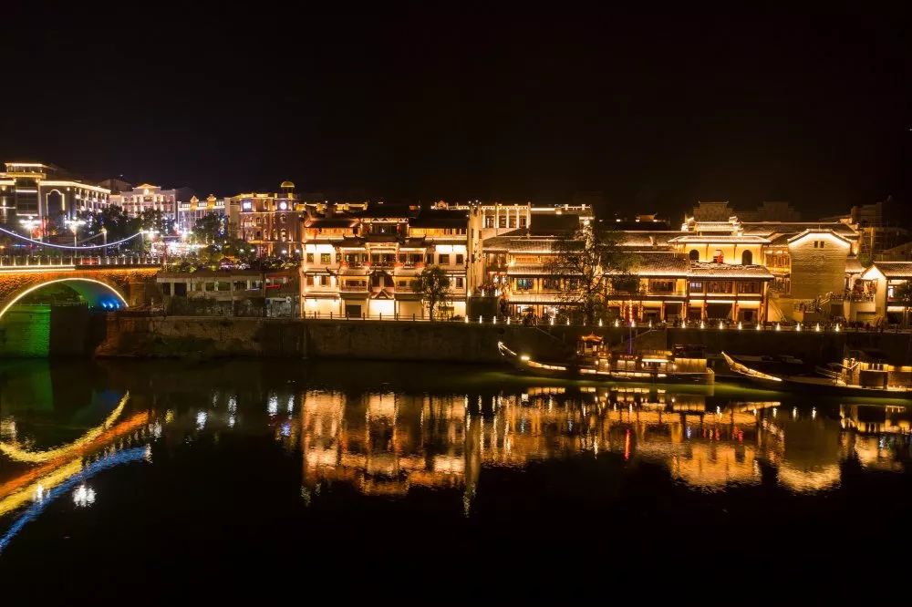 精致的木雕和房屋飛揚的翹腳構(gòu)成了典型的具有沅湘特色的江南民居圖。“人向階梯時上下,屋隨山勢自高低。”在高低錯落、左拐右彎、曲折蜿蜒中,可享受到音樂般起伏的節(jié)奏。溫暖的燈光描繪出一副明清民國市井生活的風情畫。