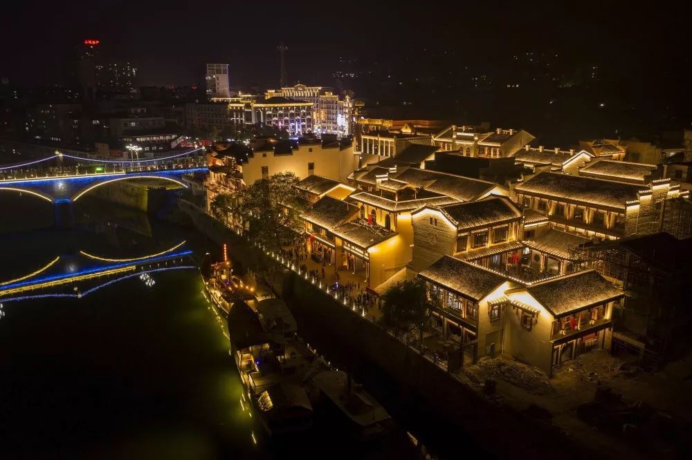 國慶假期,洪江古商城核心景區(qū)“煙雨洪江”一期以全新的姿態(tài)展現(xiàn)于世人面前。全新開放的十余棟仿古建筑外墻披滿景觀燈,流光溢彩,吸引游客紛至沓來。