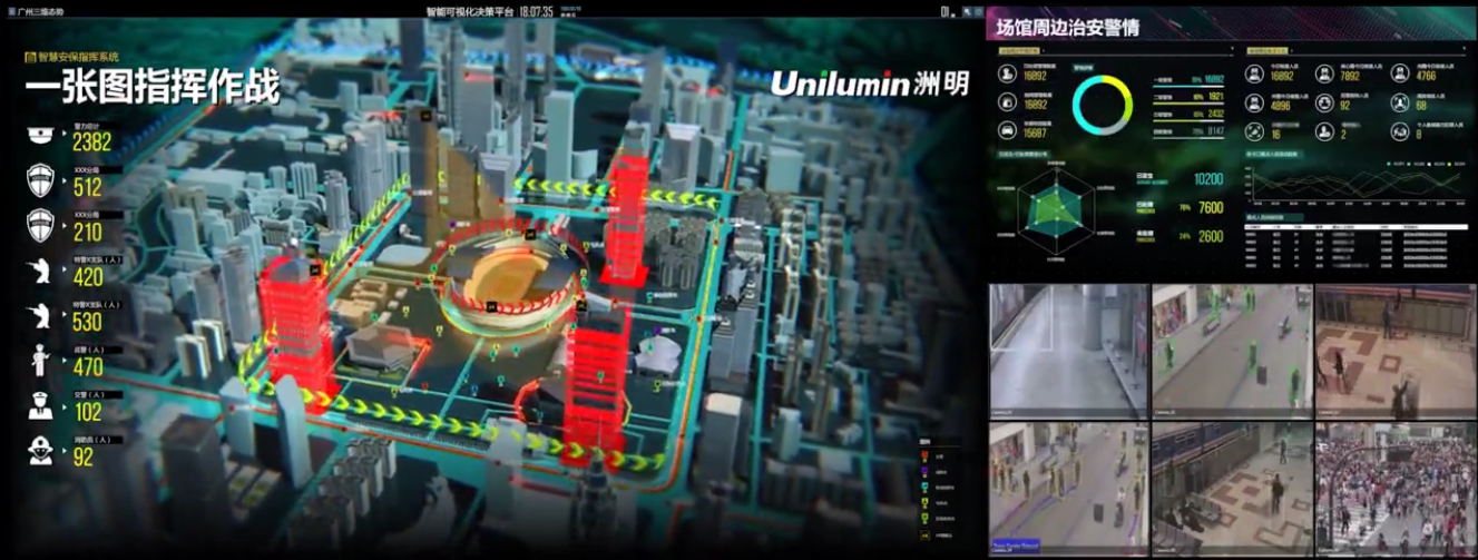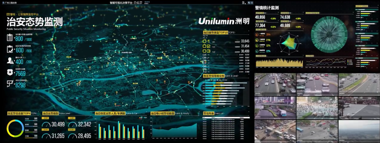 洲明為銀川市城市運營管理指揮中心配置了UHP1.2高清顯示大屏顯示與控制系統(tǒng),總面積達(dá)133.9平米,無縫拼接、多屏圖像處理、信號切換等技術(shù)的運用,能夠?qū)崿F(xiàn)指揮中心多信號的接入顯示與靈活切換;搭配智慧城市高分可視化軟件平臺和大數(shù)據(jù)分析技術(shù),能夠?qū)⒊鞘羞\行的多項關(guān)鍵指標(biāo)直觀、實時的呈現(xiàn)出來,充分實現(xiàn)全覆蓋、全過程、全天候的城市運營管理。