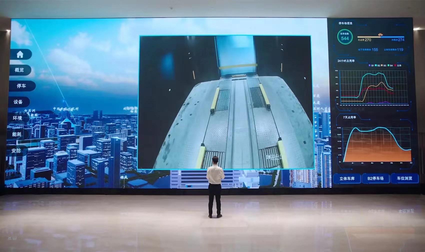 搭載洲明自媒體智能交互軟件的洲明大屏,結合為達實大廈量身打造的專業顯示方案,可實現停車、設備、環境、能耗、安防等場景畫面的快速切換,滿足達實大廈日常接待、會議、匯報、演示等不同應用場景下的顯示需求。