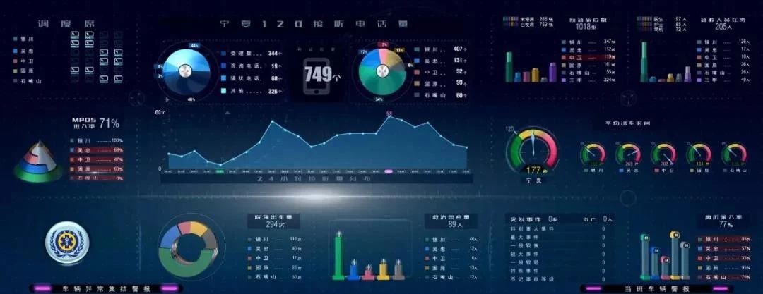 報道指出,依靠洲明緊急救援可視化解決方案,寧夏120質控監測預警平臺對120接聽電話量、院前出車量、救治患者量等數據實現了動態圖表展示,對全區不同地區、不同時間段、不同急救分站120數據進行7×24小時實時監控、分析,并智能分析救護車平均出車時間、MPDS醫療優先分級調派進入率和遵從度等核心效率指標。
