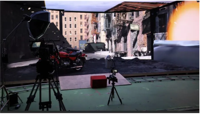 例如,在拍攝時(shí),攝像機(jī)以及演員需要和屏幕保持一定距離,以避免摩爾紋的出現(xiàn)。再比如,雖然LED是一個(gè)很好的漫散射光源,但當(dāng)你需要強(qiáng)光的時(shí)候,還是需要實(shí)拍燈光進(jìn)行配合。