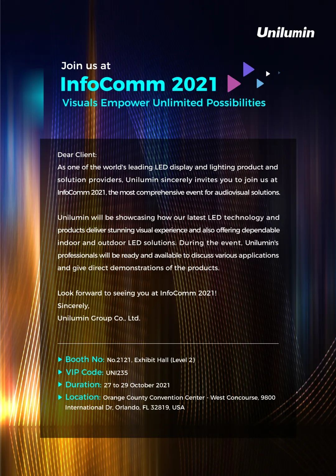 10月27日-29日,2021美國(guó)專業(yè)視聽和集成體驗(yàn)商貿(mào)展(InfoComm2021)將在美國(guó)奧蘭多國(guó)際會(huì)展中心隆重召開。