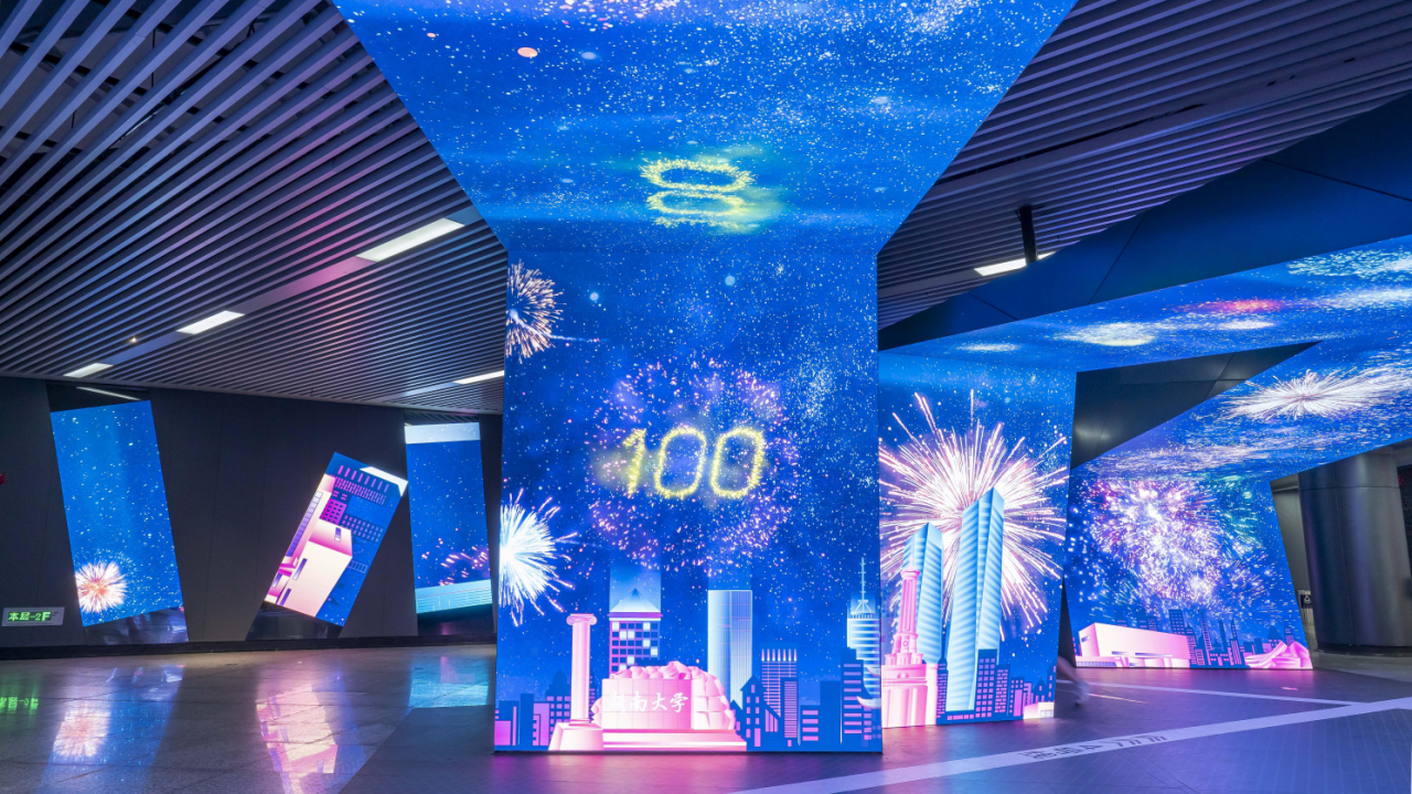 這個項目,就是長沙地鐵數字藝術館,而項目所用的各式創意屏體、藝術裝置,則全部由洲明集團藍普打造!