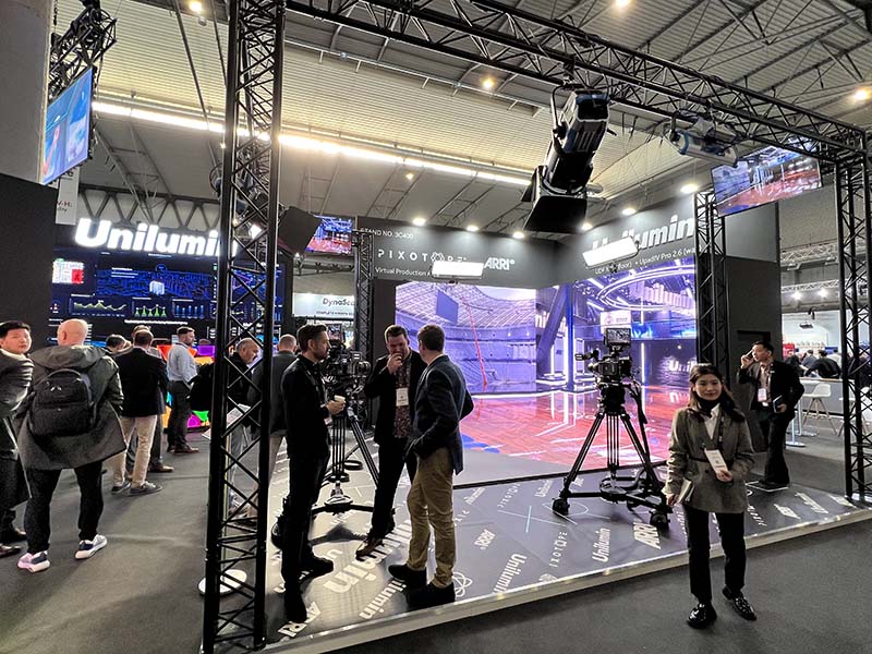 本次展會上,洲明科技攜手行業生態伙伴Pixotope、ARRI,以三面LED屏(雙立面+地磚屏)的形式現場還原虛擬拍攝效果。據了解,洲明可針對客戶不同的應用場景,提供弧面屏、四面屏、三面屏等任意造型。