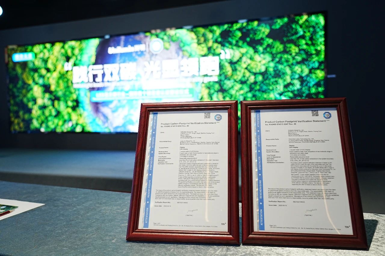 2023年4月24日,LED顯示屏行業(yè)—國際首個(gè)碳足跡認(rèn)證頒證儀式以“踐行雙碳,光顯領(lǐng)跑”為主題在洲明集團(tuán)總部召開。TUV南德意志集團(tuán)(以下簡(jiǎn)稱"TUV南德")為洲明頒發(fā)碳足跡核查聲明,洲明成為行業(yè)首家、也是國際上首個(gè)取得TUV南德LED顯示屏碳標(biāo)簽的企業(yè)。
