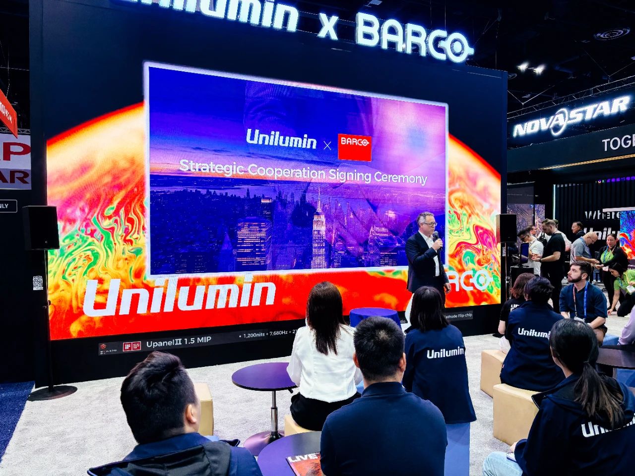 展會首日,洲明與BARCO公司戰略合作簽約儀式也在主屏區域圓滿舉行。活動全程,洲明UpanelⅡ MIP在保障畫質之外,低藍光的護眼設計使觀眾長時間觀看舒適自然;且相比傳統SMD產品,產品整體節能40%-60%,大幅優化運行能耗管理。