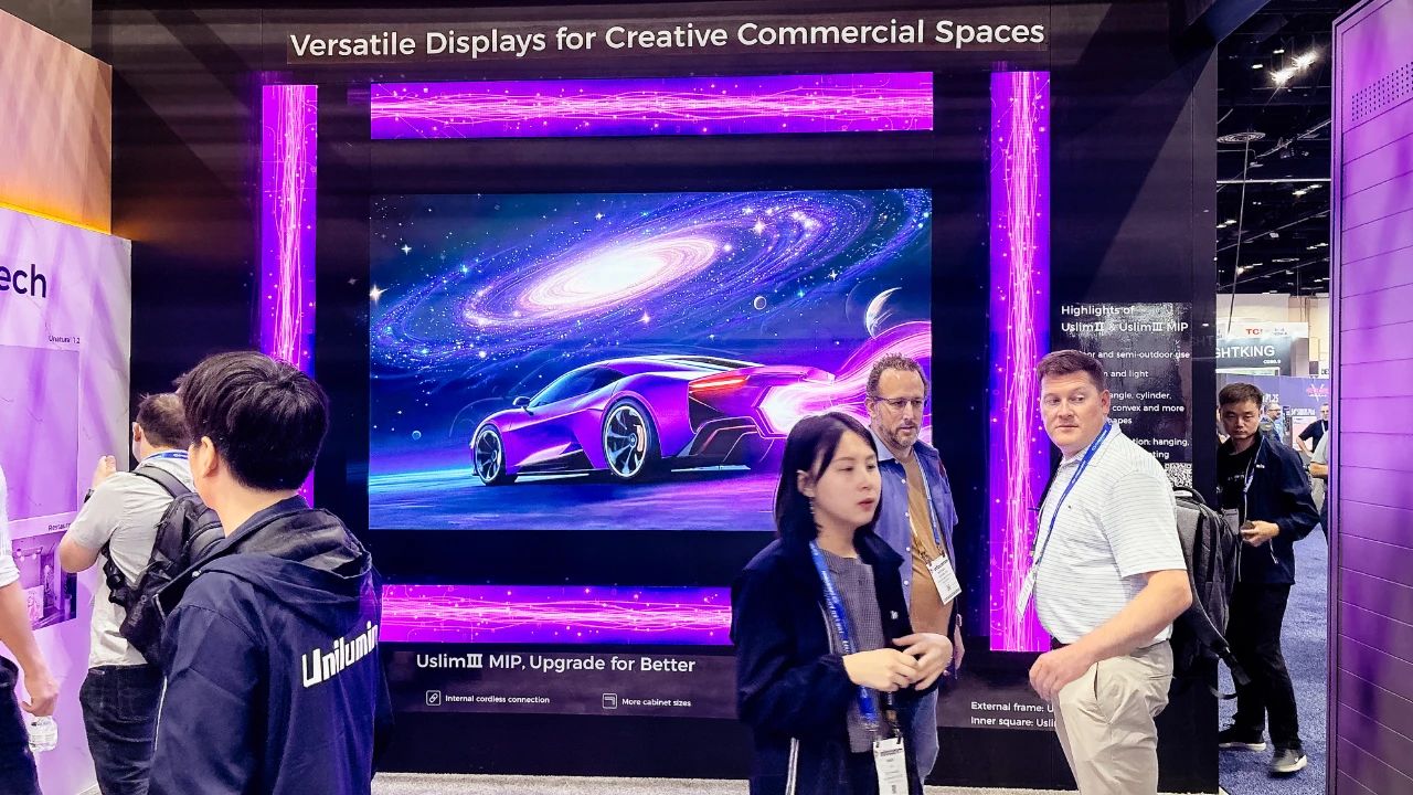 在商業零售區,洲明展出UslimⅢ MIP、U-Natural 1.2紋理屏等多款創新產品,打造仿真空間環境。