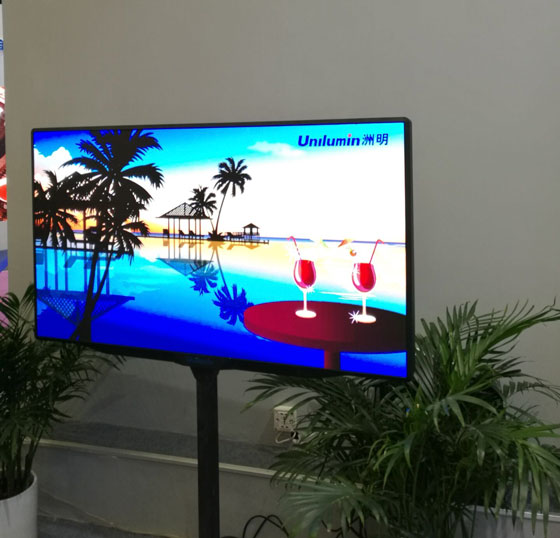 ○首個智能小間距LED顯示屏UHQ系列。現(xiàn)場以電視機形態(tài)展示,非接觸式完全前維護方式,10秒快速更換模組。