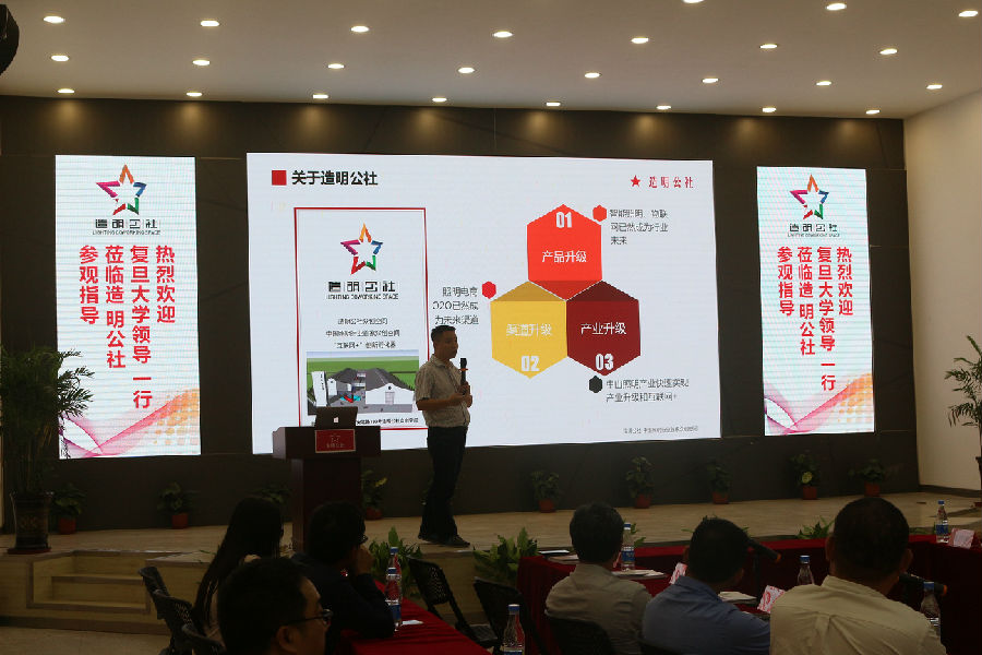 本次廣東之行,復旦大學考察團還來到洲明科技的創業孵化基地——中山造明公社,分別對公社內觸電科技、五維科技、大師工作室、樂式智能等入孵企業代表進行了調研考察,并詢問了解了其各自的運作模式及在孵項目。在考察過后,路演中心舉行的合作研討座談會上,雙方均就人才輸出合作方面表達了充分意愿,且在合作方式上進行了深入探討。
