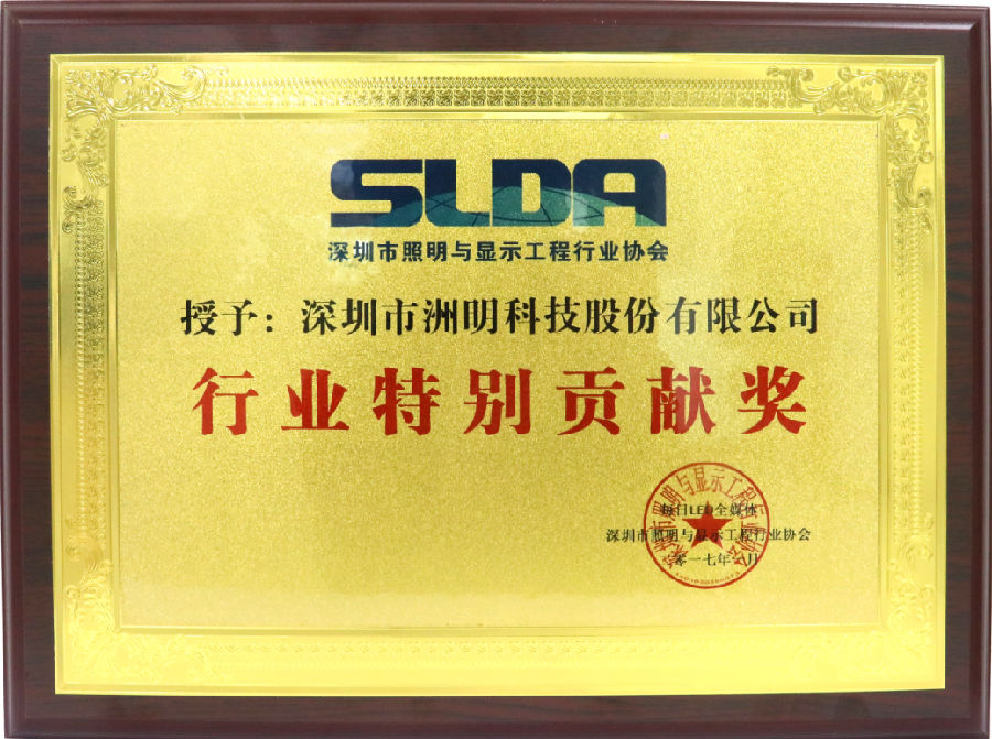 深圳市照明與顯示工程行業協會黨支部發起的“光·愛”貧困大學生計劃中,廣東洲明總經理王榮禮先生用行動踐行愛心企業家的使命,將以個人名義對貧困大學生進行捐贈,榮獲幫扶貧困大學生計劃貢獻獎。