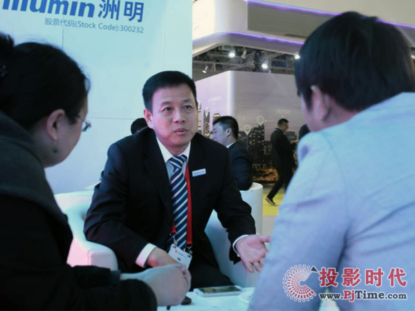 洲明科技顯示事業部副總經理高鑫(中)接受投影時代網獨家專訪