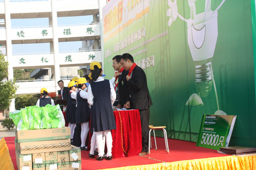 本次“光愛之行·古田”活動結合國家財政補貼,“中國逐步淘汰白熾燈、加快推廣節能燈”項目資金,深圳市洲明科技等公司捐贈產品,為增城的70所小學、4個鎮、3個街道的3801戶低保和軍烈屬家庭免費提供5萬只節能燈;還包括在國家財政補貼基礎上,利用國際合作項目資金再給予適當補貼推廣5萬只左右,支持增城地區盡快普及使用節能燈。這十萬只節能燈預計年可省電443萬千瓦時,節約電費267多萬元。深圳市洲明科技股份有限公司全程參與了此次活動并向增城市實驗小學教師捐贈了三百只LED護眼臺燈,洲明科技公司董事長林洺鋒在現場發表了捐贈講話時表示,通過參加國家發改委環資司組織的系列活動深深體會到節能減排的重要性。